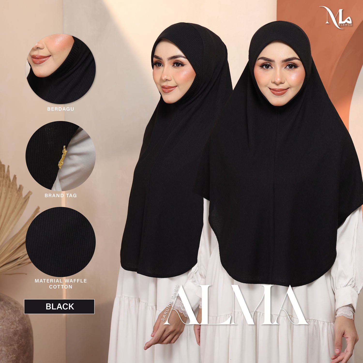 MEASUREMENT TUDUNG ALMA: (+-2inch) atas faktor potong & jahit kain